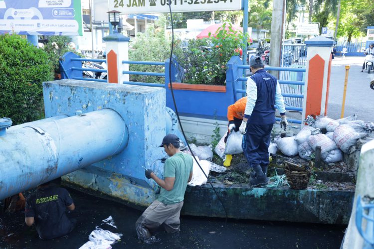 BANJARMASIN, klikkalsel.com – Guna menjaga kebersihan lingkungan, PT Air Minum Bandarmasih turut berpartisipasi dalam kegiatan bersih-bersih sungai di sepanjang Jalan A Yani, Banjarmasin.