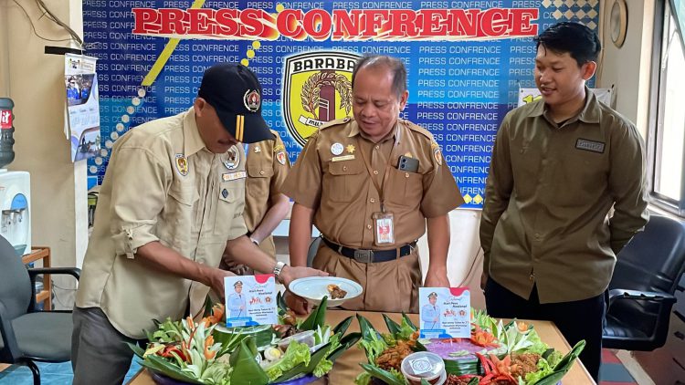 Sekda bersama rombongan datang membawa dua tumpeng kiriman pemerintah daerah sebagai bentuk rasa syukur dan mempererat tali silaturahmi antara pemerintah dan media.