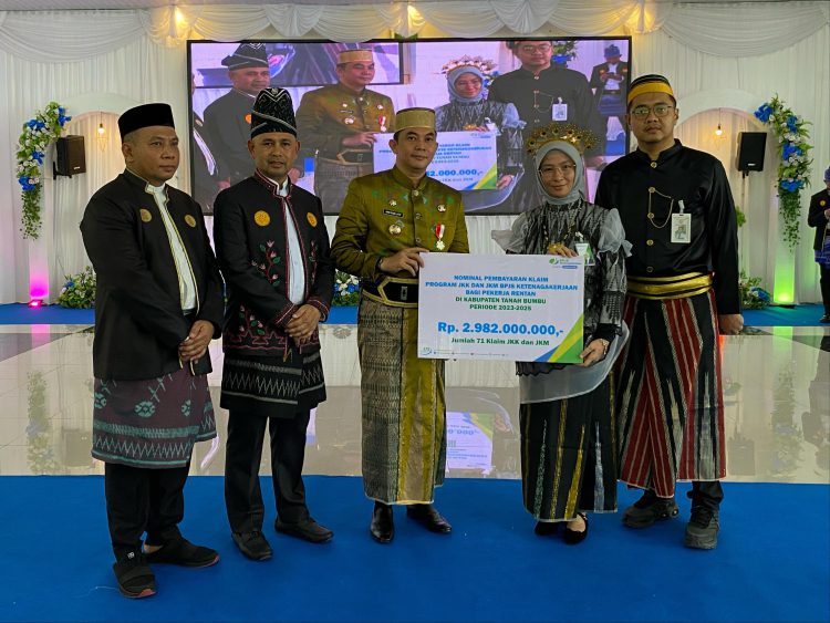 Manfaat Program JKK dan JKM BPJS Ketenagakerjaan tersebut diserahkan langsung oleh Bupati Tanah Bumbu, Andi Rudi Latif didampingi Wakil Bupati Tanah Bumbu Bahsanuddin dan Kepala Dinas Tenaga Kerja dan Transmigrasi Tanah Bumbu Kadri Mandar di acara Perayaan Hari Jadi Tanah Bumbu, di Kantor Bupati Tanah Bumbu, Selasa (8/4/2025)