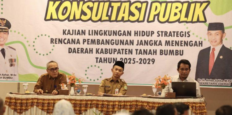 BATULICIN, klikkalsel.com – Pemerintah Kabupaten Tanah Bumbu (Pemkab Tanbu) melalui Dinas Lingkungan Hidup (DLH) gelar konsultasi publik Kajian Lingkungan Hidup Strategis (KLHS) Rencana Pembangunan Jangka Menengah Daerah (RPJMD) tahun 2025-2029.