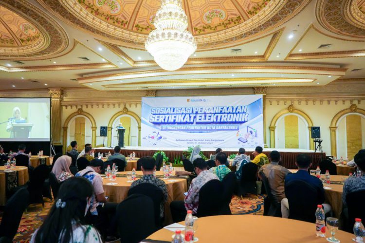 BANJARBARU, Klikkalsel.com – Dalam rangka memaksimalkan penggunaan sertifikat elektronik di lingkungan Pemerintah Kota Banjarbaru yang tertuang dalam Peraturan Wali Kota Banjarbaru Nomo 4 Tahun 2022, maka Pemerintah Kota Banjarbaru melalui Dinas Komunikasi dan Informatika (Diskominfo) Kota Banjarbaru melaksanakan Sosialisasi Pemanfaatan Sertifkat Elektronik di Lingkungan Pemerintah Kota Banjarbaru yang bertempat di Ballroom Grand Qin Hotel Banjarbaru pada Kamis (24/10/2024).