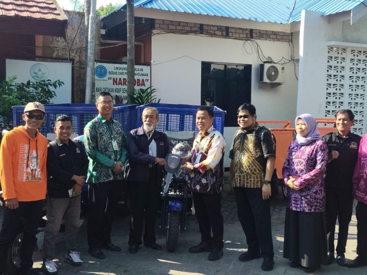 Penyerahan tersebut dilakukan secara simbolis dengan menyerahkan fasilitas kebersihan berupa Motor Gerobak roda 3, Gerobak tarik dan bak sampah.