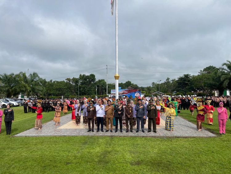 BALANGAN, klikkalsel.com – Peringati Hari Bhayangkara ke- 78, Polres Balangan Menggelar Upacara dengan tema “Polri Presisi Mendukung Percepatan Transformasi Ekonomi Yang Inklusif dan Berkelanjutan Menuju Indonesia Emas”, di Halaman Kantor Bupati Balangan, Paringin Selatan, Senin (1/7/2024).