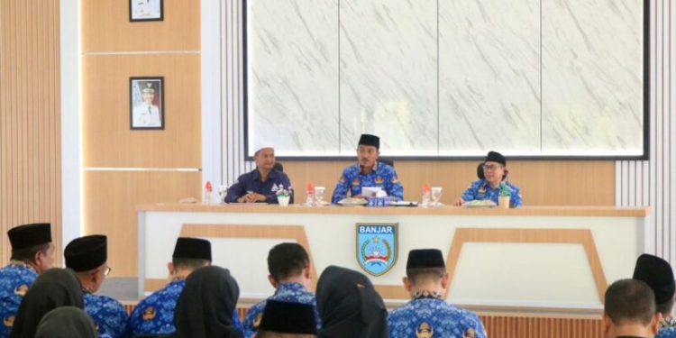 MARTAPURA, klikkalsel.com – Pemerintah Kabupaten (Pemkab) Banjar terus mematangkan kesiapan menjelang puncak peringatan 5 Rajab. Dalam Rapat Koordinasi (Rakor) Mingguan di Aula Kantor DPRKPLH, Senin (17/11/2025), Bupati Banjar H Saidi Mansyur menginstruksikan seluruh instansi untuk memperketat sinkronisasi teknis demi menyambut jutaan jemaah.