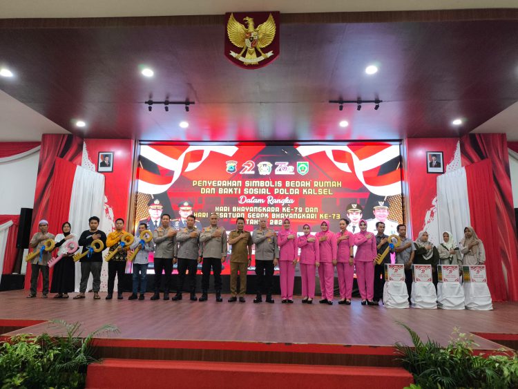 BANJARBARU, klikkalsel.com – Polda Kalsel menggelar bakti sosial 327 bedah rumah di sejumlah kabupaten/kota, dalam rangka HUT Bhayangkara ke-79. Diantaranya 100 rumah warga tidak layak huni di Kabupaten Balangan mendapat perbaikan total dan hampir rampung 100 persen seluruhnya.