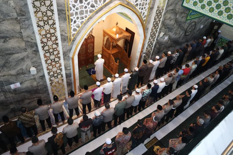 Salat ghaib dilaksanakan di Mesjid Riyadus Shalihin Polda Kalsel, Banjarbaru, Jumat (29/8/2025), seusai pelaksanaan salat Jumat diikuti oleh Kapolda Kalsel, Irwasda Polda Kalsel, Pejabat Utama Polda Kalsel, personel Polri dan ASN Polda Kalsel.