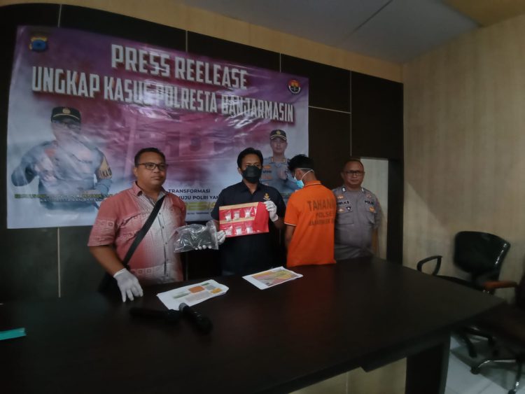 “Dari hasil pengembangan, kami mengamankan GR saat berada di rumah orang tuanya. Di lokasi, petugas menemukan dua paket sabu seberat 0,36 gram,” ungkap Kapolsek Banjarmasin Barat Kompol Pujie Firmansyah melalui Kanit Reskrim Ipda Ma’zun Koso dalam konferensi pers di Mapolsek, Selasa (20/5/2025).