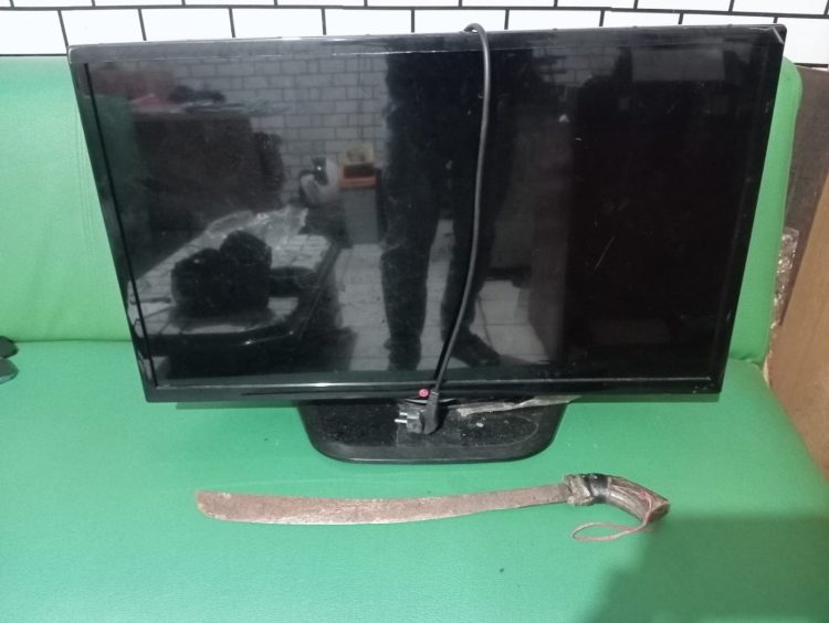 Saat dilakukan penggeledahan di rumah tersangka, polisi menemukan barang bukti berupa satu unit TV yang identik dengan milik korban serta sebilah senjata tajam jenis parang panjang sekitar 70 sentimeter yang diduga digunakan untuk mencongkel rumah korban.