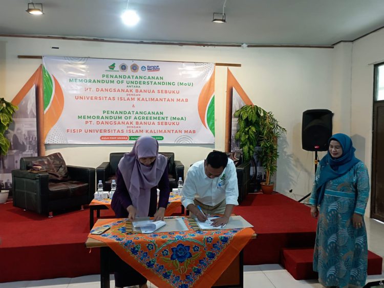 BANJARMASIN, klikkalsel.com – Setelah Universitas Lambung Mangkurat (ULM), PT. Dangsanak Banua Sabuku (DBS) kembali melakukan penandatanganan Memorandum of Understanding (MoU) dengan Universitas Islam Kalimantan (UNISKA) MAB dan Penandatanganan Memorandum of Agreement (MoA) bersama Fakultas Ilmu Sosial dan Politik (Fisip) Uniska.