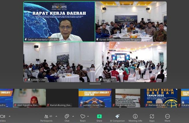 Hal itu disampaikan dalam arahannya saat membuka Rapat Kerja Daerah (Rakerda) Kantor Wilayah (Kanwil) BPN Provinsi Sulawesi Tenggara, yang berlangsung di Ruang Aula Baruga Bhumi Bhakti, Rabu (16/7/2025)