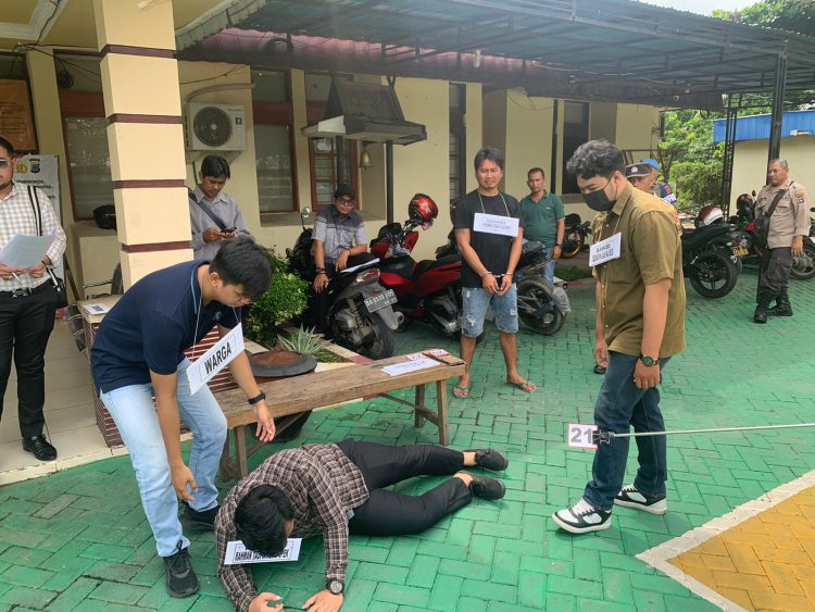 Rekonstruksi dipimpin Wakapolsek Banjarmasin Selatan, AKP Umprasetyo didampingi Kanit Reskrim Iptu Sudirno, di Halaman Mapolsek Banjarmasin Selatan, Senin (1/4/2024) pagi.