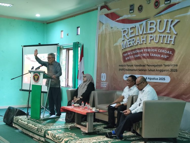 MARTAPURA, klikkalsel.com – Badan Nasional Penanggulangan Terorisme (BNPT) melalui Forum Koordinasi Pencegahan Terorisme (FKPT) Kalsel menggelar kegiatan diskusi Rembuk Merah Putih dengan tema “Mewujudkan Pemuda Cerdas Kritis dan Cinta Tanah Air”.