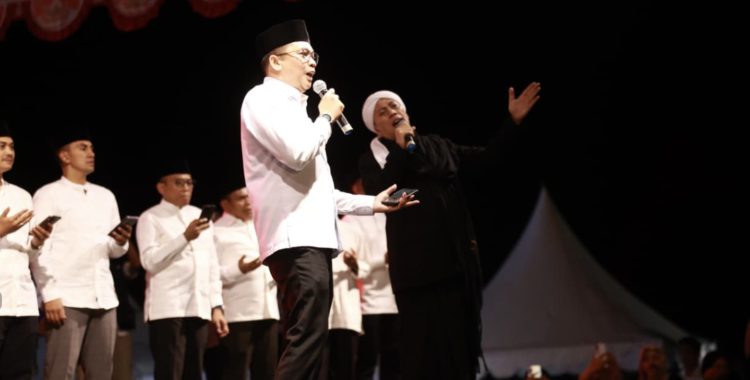 Di hadapan ribuan jamaah dan warga yang memadati lokasi, Bupati mengajak semua yang hadir untuk bersatu dalam lantunan sholawat.