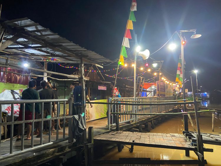 Relawan juga menghiasnya dengan rangkaian lampu yang dipasang di sepanjang sisi dermaga, menciptakan suasana hangat dan penuh kekhidmatan.