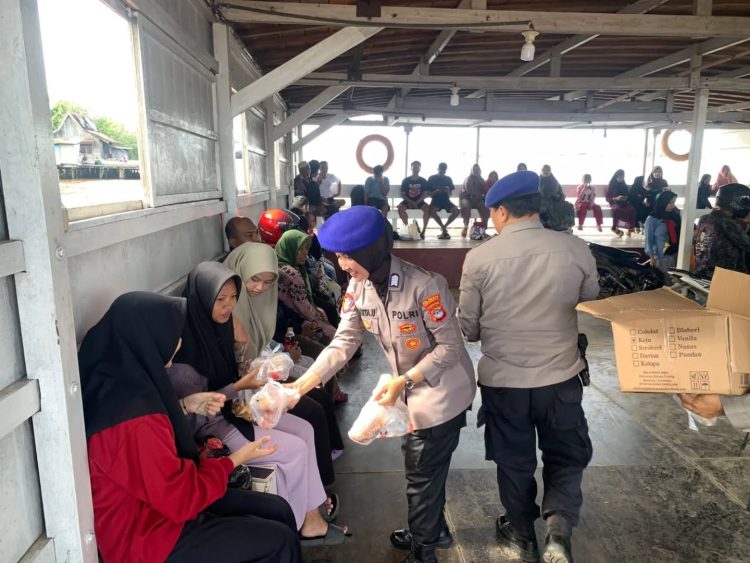 Tidak hanya menjaga keamanan, momen ini juga diwarnai dengan aksi berbagi ratusan makanan dan minuman gratis untuk jemaah sesuai dengan amanat dari Kapolresta Banjarmasin Kombes Pol Cuncun Kurniadi.