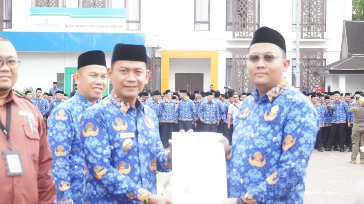 Penyerahan SK secara simbolis tersebut langsung dipimpin oleh Wali Kota Banjarmasin, Muhammad Yamin seusai apel pagi di Halaman Balai kota Banjarmasin, Senin (17/11).