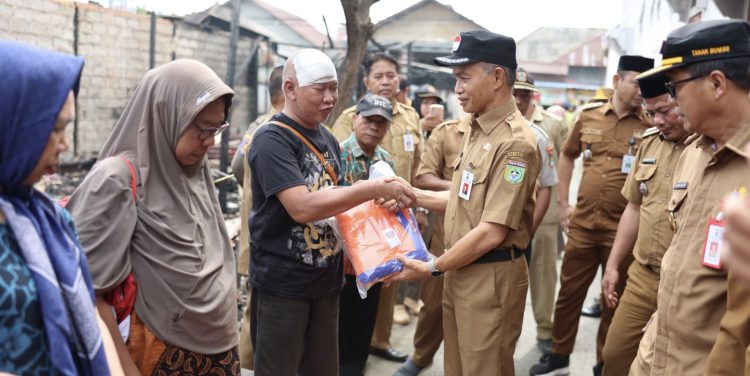 “Mohon bersabar ibu bapak semoga dengan kejadian ini ada hikmahnya,” kata sekda seraya menyerahkan bantuan kepada korban tersebut.