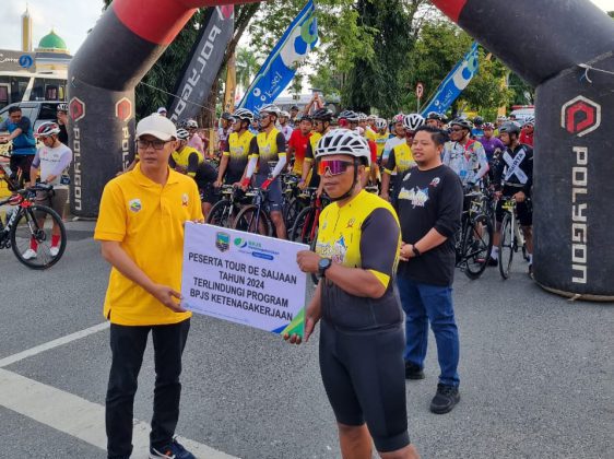 BANJARMASIN, klikkkalsel.com – BPJS Ketenagakerjaan (BPJamsostek) Cabang Pulau Laut Kotabaru melakukan simbolis penyerahan kartu peserta BPJamsostek kepada 167 peserta Tour De Saijaan 2024 yang dilakukan di titik start Siring Laut, Kabupaten Kotabaru pada Minggu (26/8/2024)