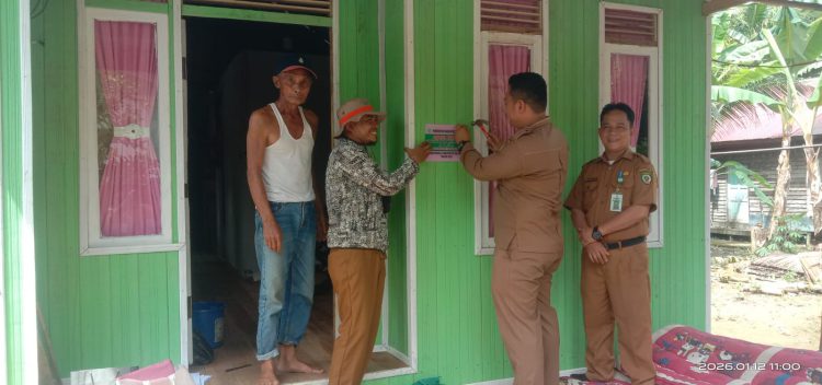 Penyerahan bantuan ditandai dengan pemasangan plat rumah RS-RTLH Tahap III Tahun 2025, yang dilakukan oleh Plt. Camat Awayan bersama jajaran Kecamatan Awayan, TKSK, serta aparat desa setempat, sebagai simbol dimulainya perubahan menuju hunian yang lebih layak.