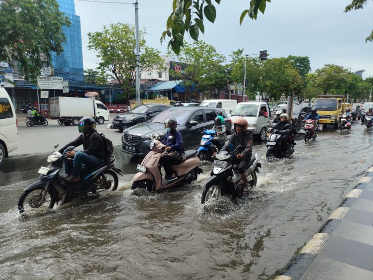 Padahal, hujan telah berhenti berjam-jam sebelumnya. Namun air tetap menggenang, tak bergerak turun, seolah menegaskan betapa buruknya sistem drainase yang tak kunjung dibenahi.