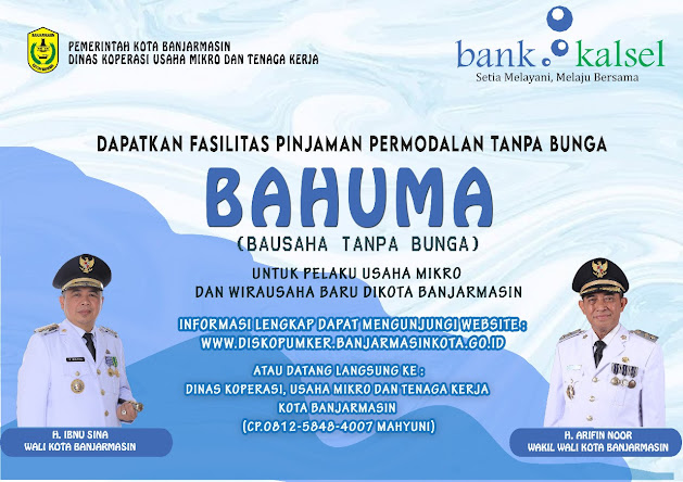 BANJARMASIN, klikkalsel.com – Program BAHUMA (Bausaha Tanpa Bunga) adalah program fasilitas kredit usaha tanpa bunga yang diberikan kepada para Pelaku Usaha perorangan atau kelompok di Banjarmasin.