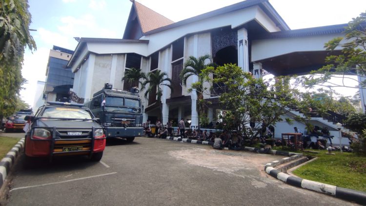 Kabarnya, Personel bersama kendaraan taktis (rantis) ditempatkan di sekitar gedung dewan, untuk mengantisipasi jalannya aksi yang diperkirakan memuncak pada pukul 14.00 Wita.