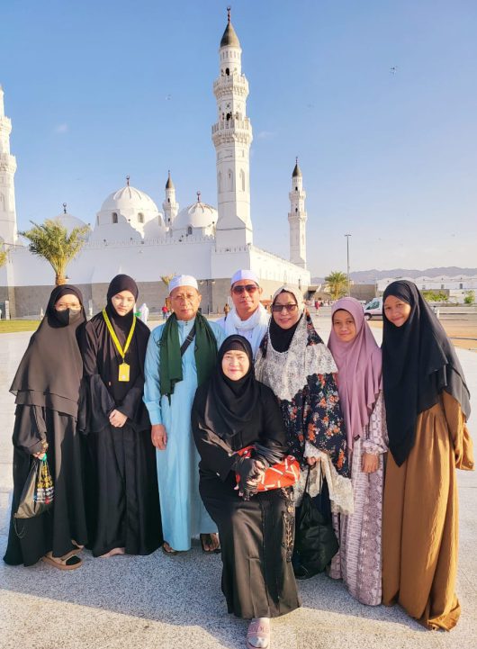 Bersama istri, Minarni Nunu dan kedua kakak ipar, Zulkifli Raban-Yuniar Yuliana (Franchice Wong Solo) yang juga memberangkatkan umrah Nor Aina, Husna, Aisya Nabila tiga santriwati Pondok Tahfidz Al Quran Az Zahra – Lumbu Raya, Rantau penghapal Quran 30 juz.