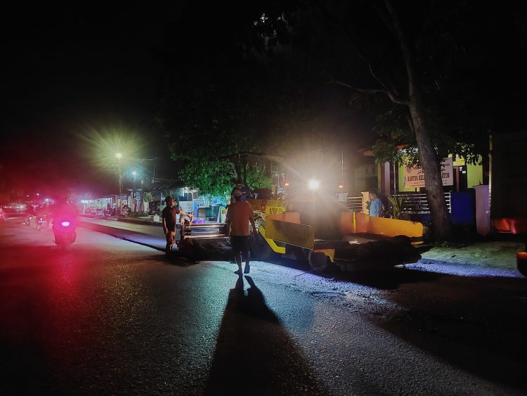Pengaspalan Jalan Albasia, Kelurahan Keraton, Martapura, berlangsung sejak, Kamis (25/04/2024) kemarin dan dikerjakan setiap malam.